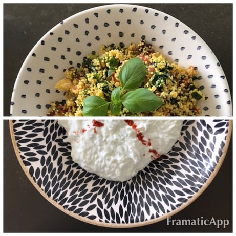 Den Couscous nach Anleitung kochen und in einer Schüssel auskühlen lassen.Währenddessen Tomaten, Zucchini, Blattspinat, entkernte Oliven, Tomaten, Basilikum und Petersilie und Schafkäse klein würfeln. Die Zucchinistücke und den Blattspinat in etwas Olivenöl kurz und kräftig braten. Geriebenen Knoblauch oder 1 Msp Asafoetida dazugeben und kurz mitbraten. Alles zum Couscous geben. Saft einer halben Zitrone, 1 TL Steinsalz, ½ Pfeffer, ½ TL roter Paprika, 1 TL Oregano und Olivenöl zufügen und unterrühren.